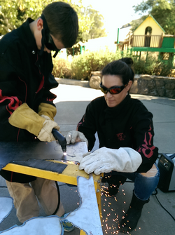 When we are not working on client projects, one of the things that we love to do is teach. DC Metalwork has developed a rich curriculum to teach children how to weld. We have been teaching at The Crucible in Oakland and at two schools on the weekend. And, in the last three years, we have been asked to participate and speak at Maker Faire and our students have created work that was shown at Maker Faire in the Bay Area.
